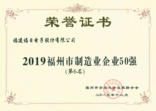 2019年12月27日,2019福州市制造業(yè)企業(yè)50強(qiáng)發(fā)布暨福州市企業(yè)與企業(yè)家聯(lián)合會年會在福州召開。會議發(fā)布“2019福州市制造業(yè)企業(yè)50強(qiáng)”名單并授牌,福建福日電子股份有限公司入選該名單,位列第6名。福日電子黨委書記李震受邀參會。